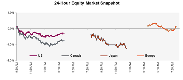 Stock futures are relatively unchanged this morning, following a down day for North American equities with indexes retreating from all-time highs. Despite seeing a small pullback yesterday, equity markets continue to show signs of euphoria, with options data revealing record demand for call options, far outpacing puts for the first time in four years. This rise, driven largely by retail investors and concentrated in AI, semiconductor, and metals stocks, has pushed sentiment indicators like Barclays’ Equity Euphoria Index to levels not seen since the tech bubble. Despite concerns about tariffs, growth, and Fed policy, FOMO is dominating market behaviour. Strategists warn that such exuberance often precedes weaker returns, yet many investors remain reluctant to step back, mindful that betting against a euphoric market can be costly if momentum continues.